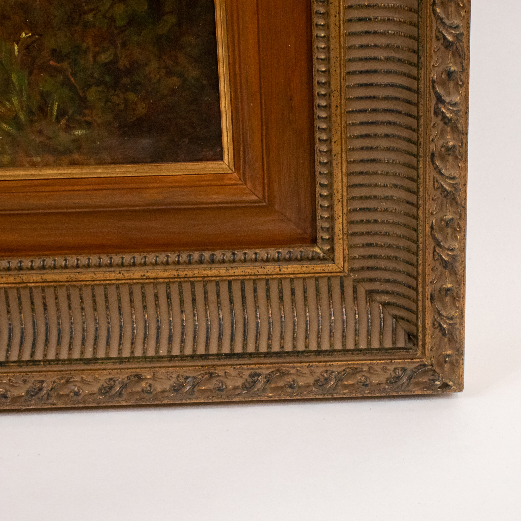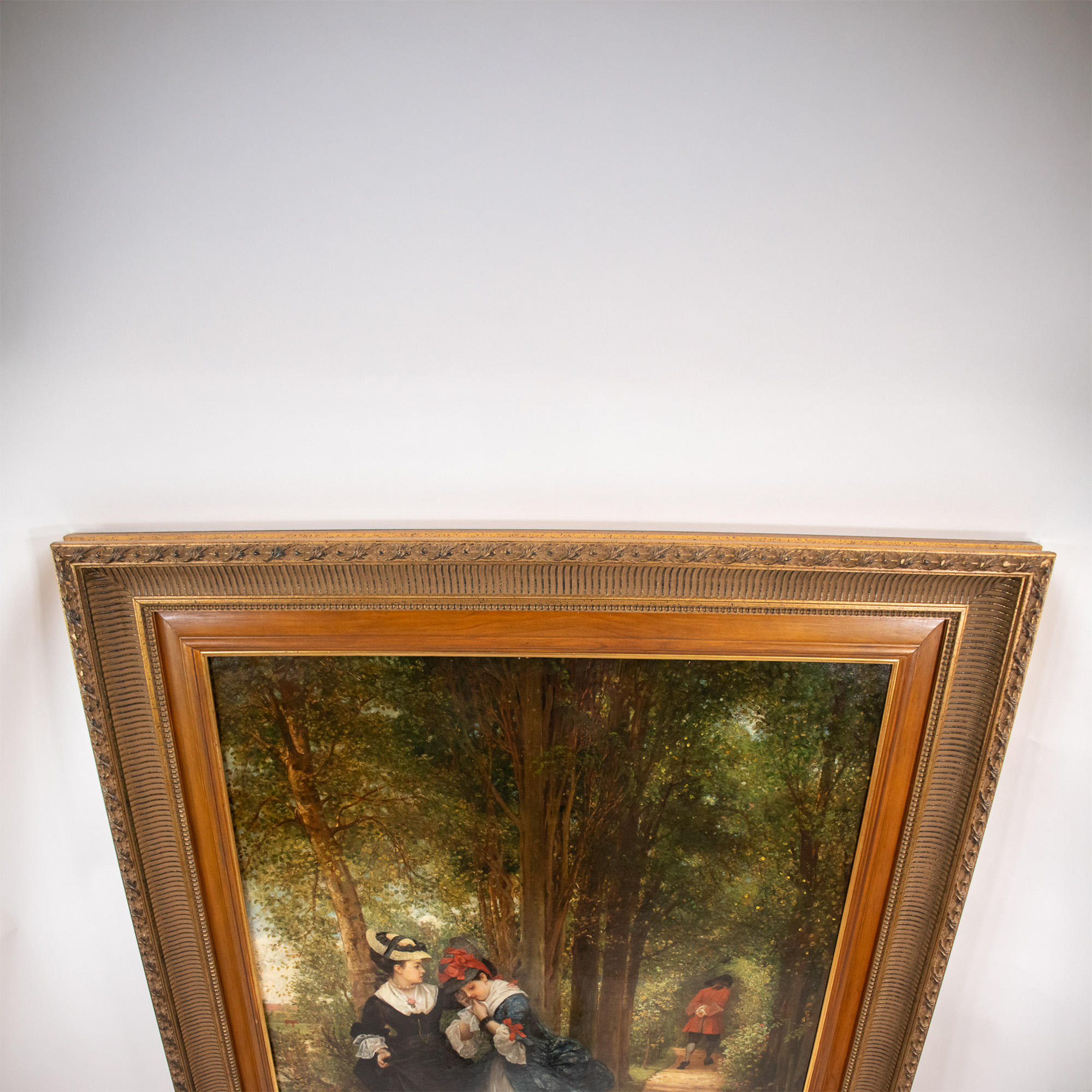 The canvas is housed in a later Empire‑style frame with a fluted cove, beaded sight edge, and running foliate ornament, which presents the picture handsomely on the wall and complements its period mood.