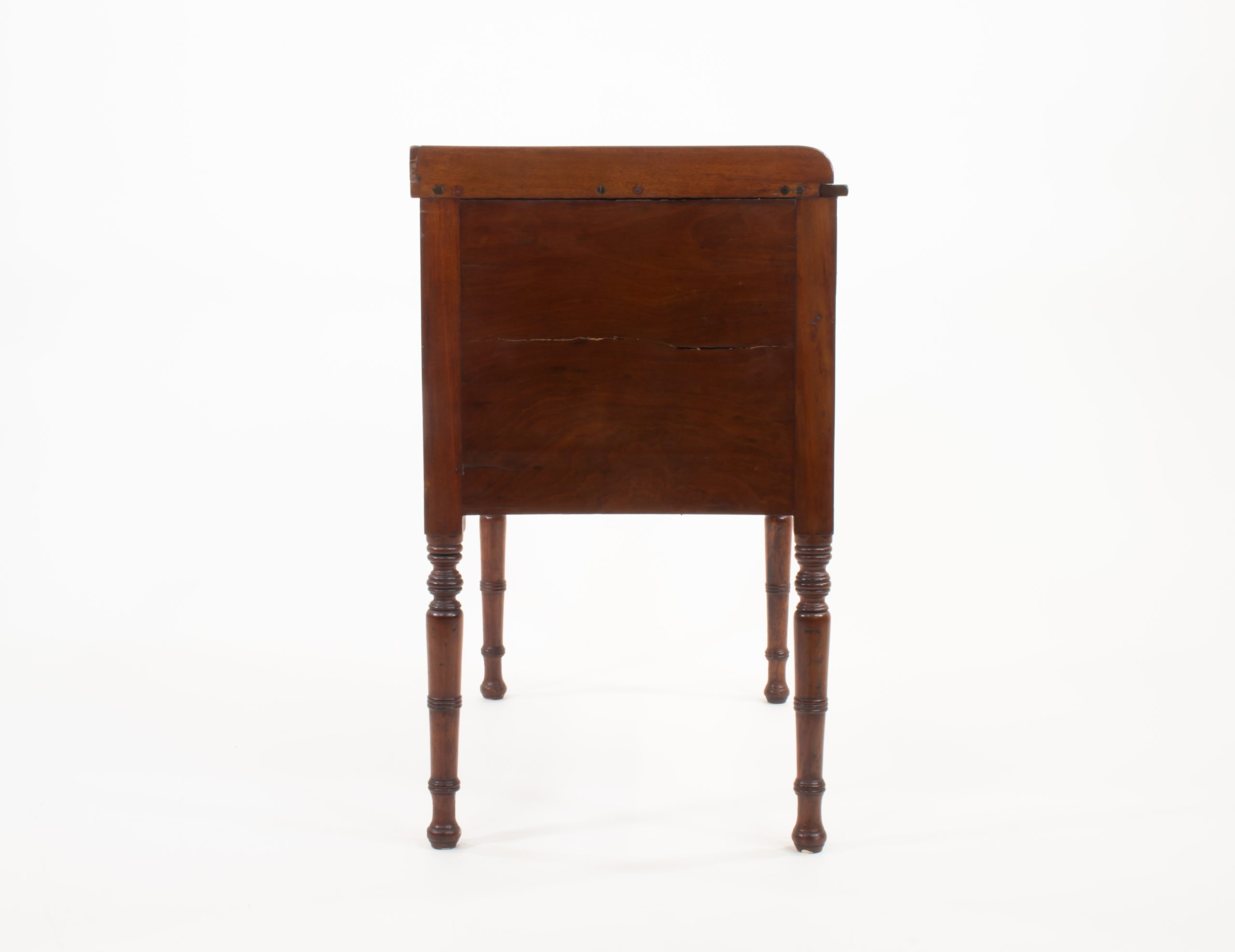 Age‑related shrinkage cracks and surface wear attest to its authentic nineteenth‑century craftsmanship, giving the piece the kind of mellow patina that only time can produce. Versatile in both scale and design, this cabinet would serve beautifully as a side cupboard, writing desk, or bedside table, bringing understated Regency sophistication to any interior.