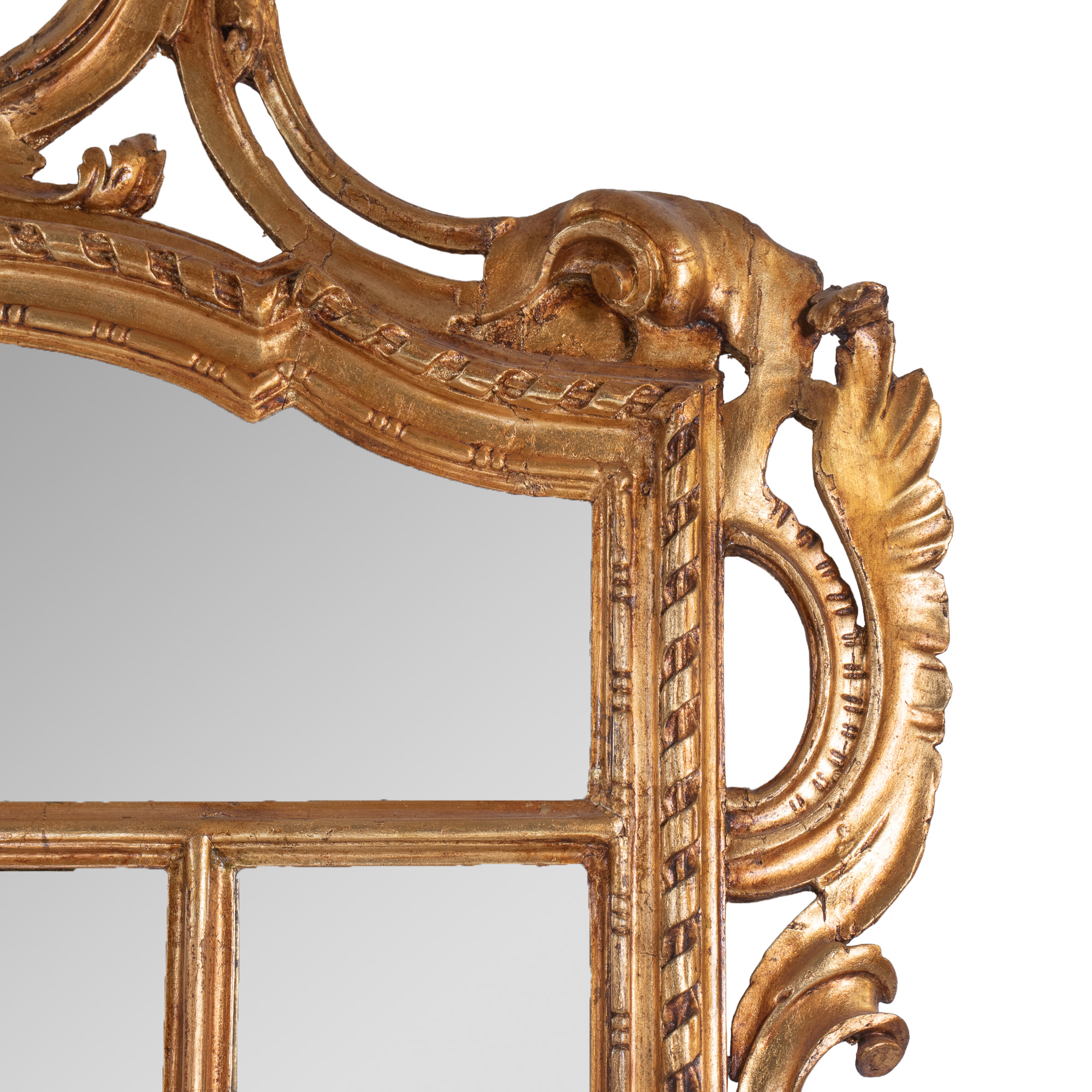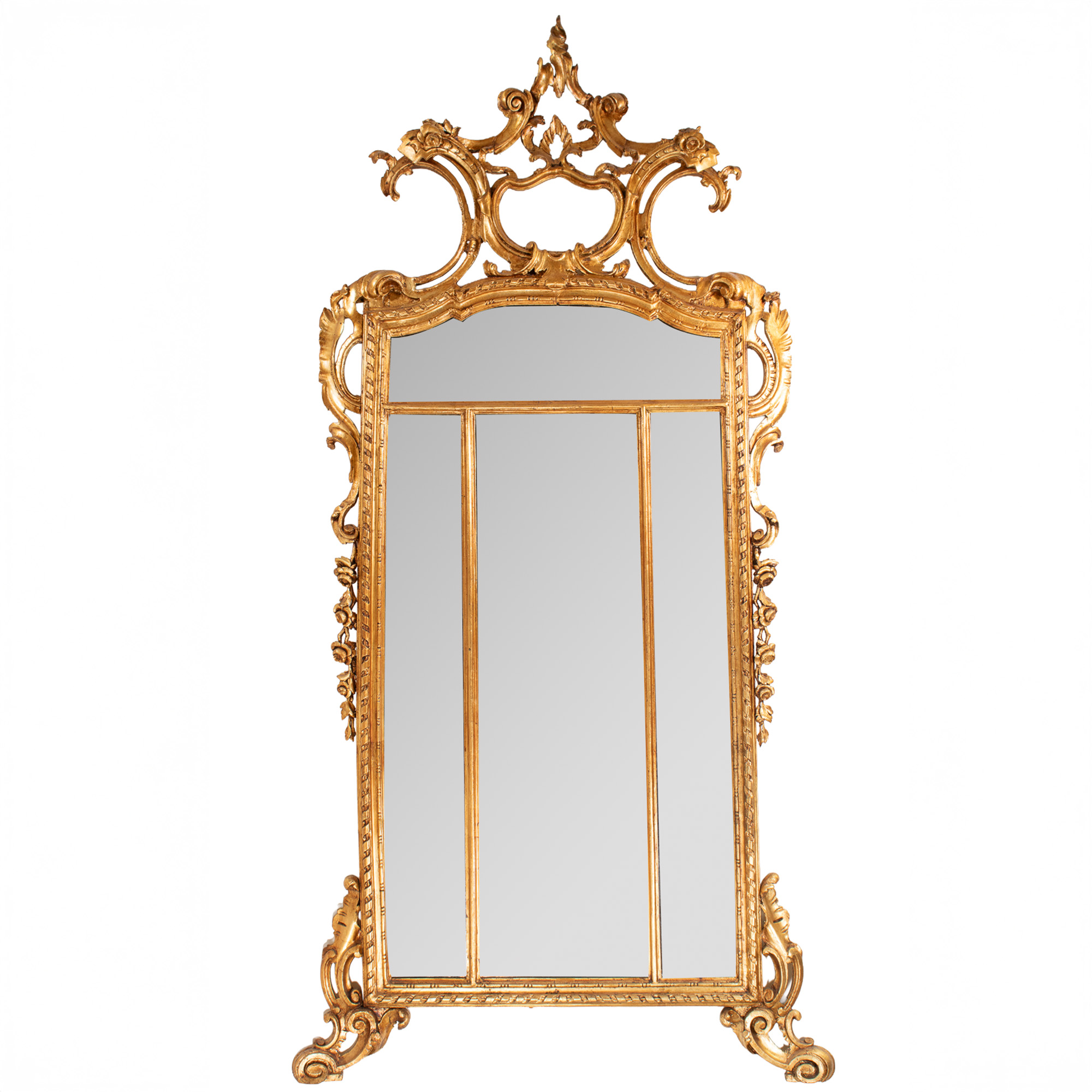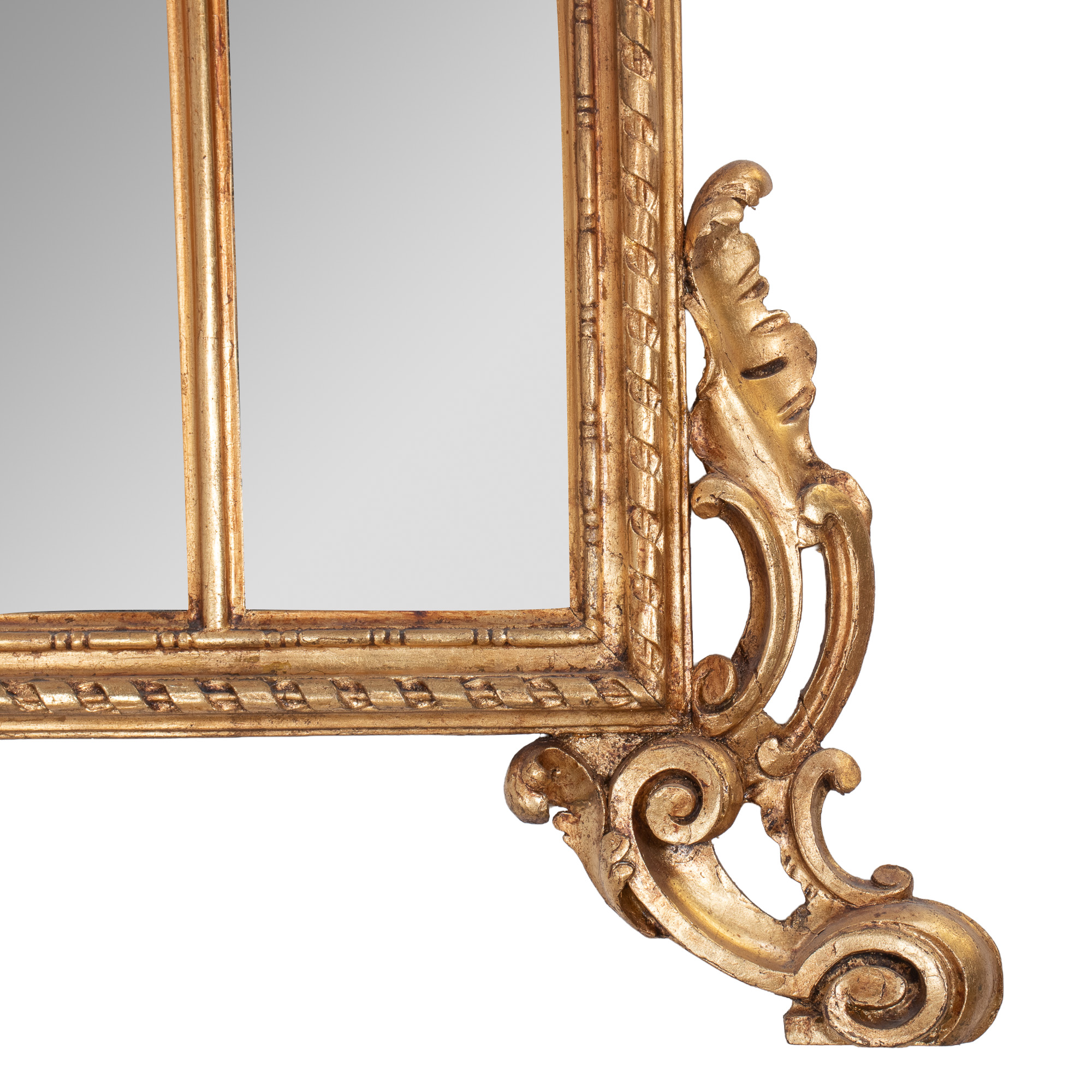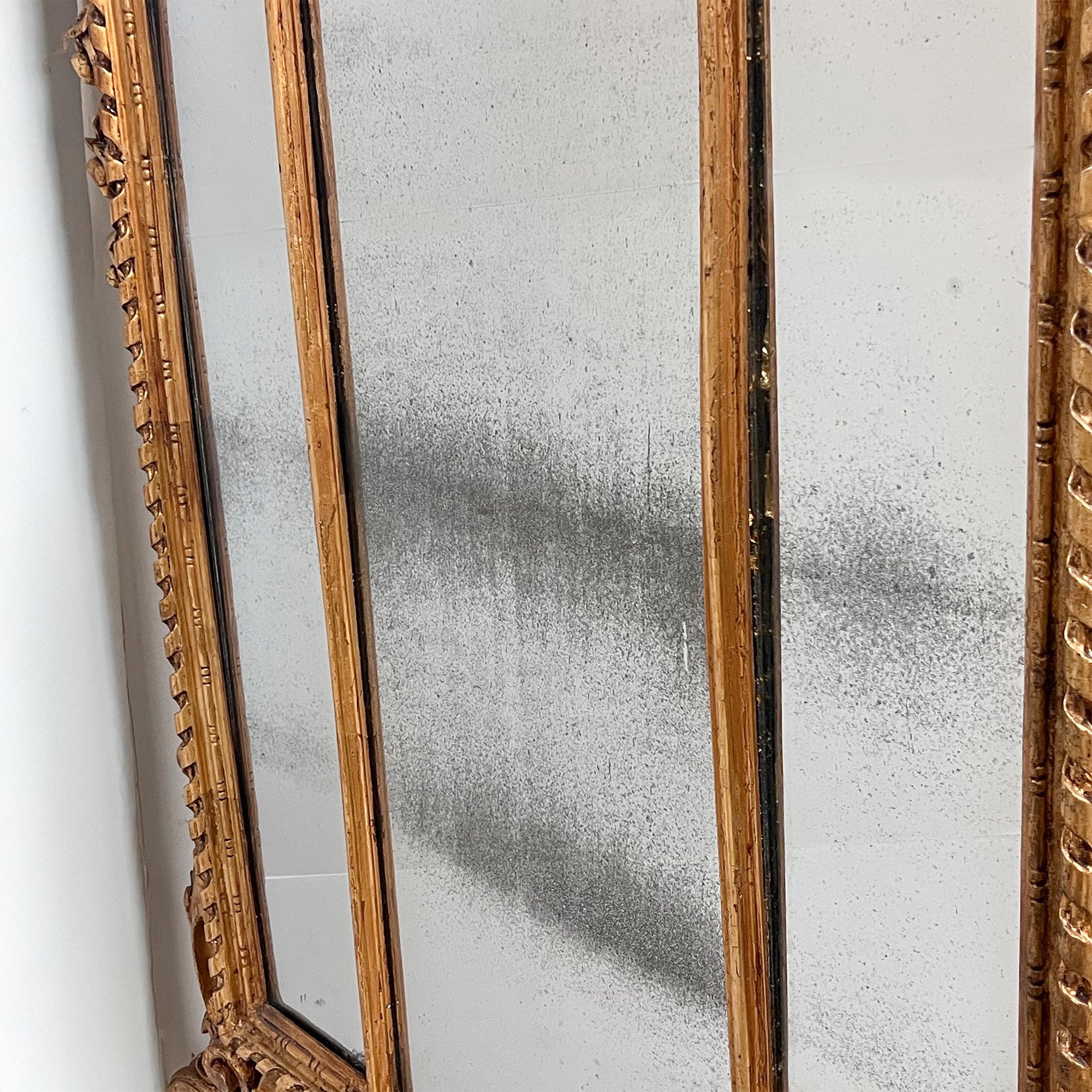 The mirror’s monumental scale and architectural symmetry embody the grandeur and refinement of the Second Empire and early Third Republic, echoing the decorative language of Versailles and the royal ateliers of Paris. Comparable examples from Parisian ateliers such as Krieger and Beurdeley exemplify the same scale and lavish gilding found here. Executed in the manner of these celebrated makers, the design reflects their opulent craftsmanship and mastery of the Louis XIV Revival aesthetic.