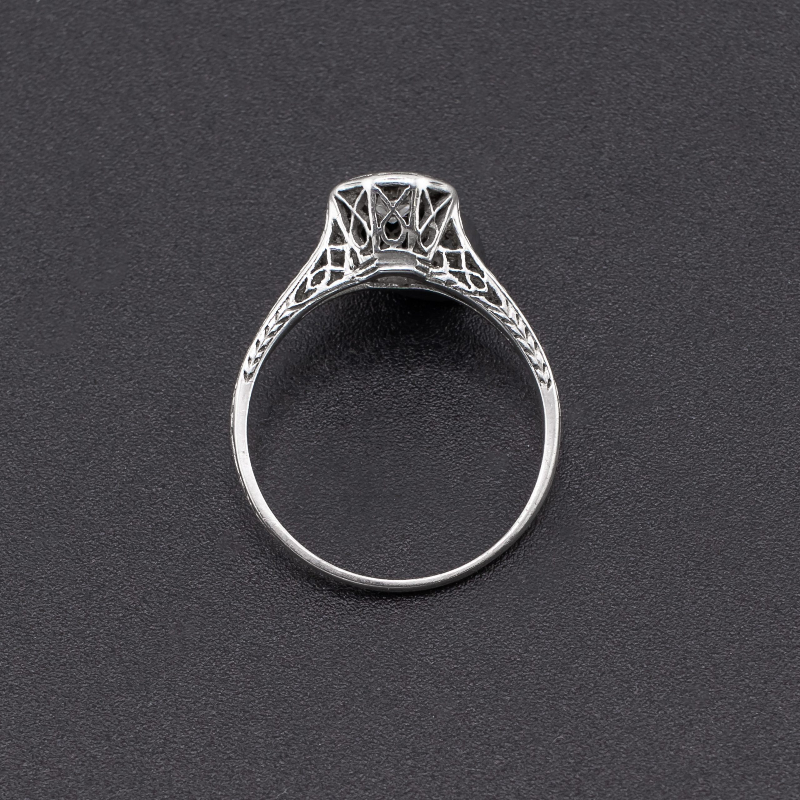 Whether worn as an engagement ring or as part of a curated vintage collection, its sculpted platinum filigree mounting makes it a beautiful choice for an engagement ring or collectible heirloom.